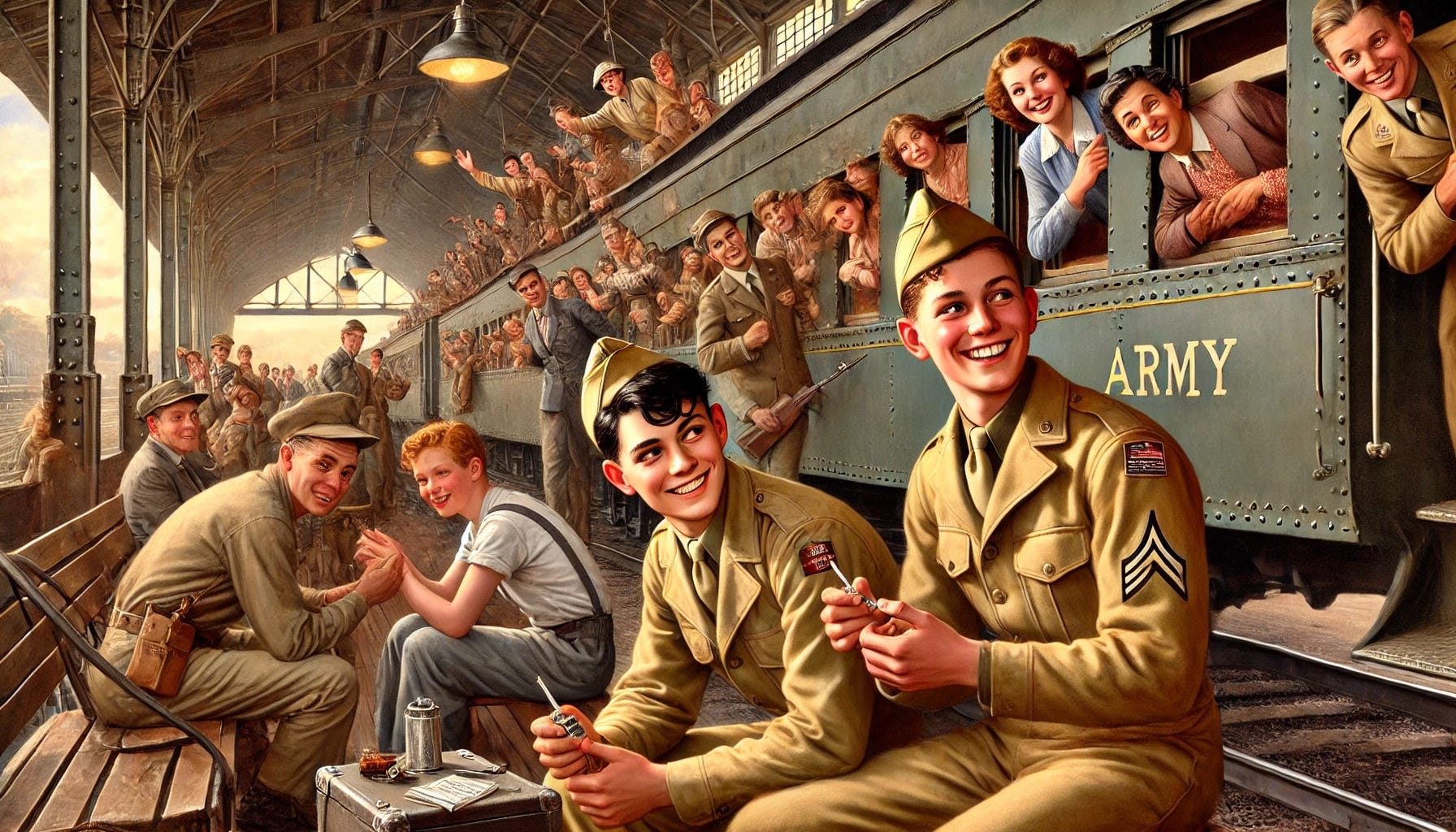 The train station was filled with mothers and wives and families waving to their sons, the railway cars overflowing with wild youth and testosterone, and absolutely no idea what their future would hold. As we pulled away from the station, a skinny redhead kid sat next to me and offered me a cigarette.
